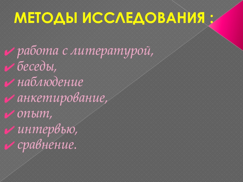 МЕТОДЫ ИССЛЕДОВАНИЯ :