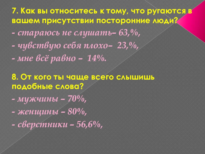 Слайд 337. Как вы относитесь к тому, что ругаются в вашем присутствии