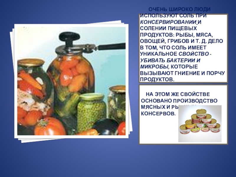 На этом же свойстве основано производство мясных и рыбных консервов.