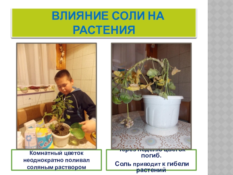 Соль приводит к гибели растений.