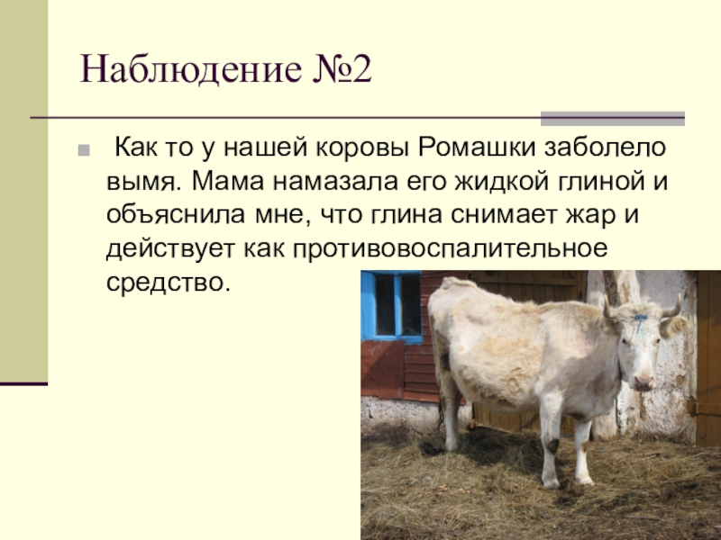Как то у нашей коровы Ромашки заболело вымя. Мама