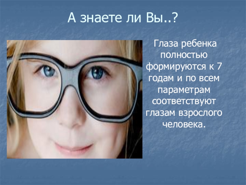А знаете ли Вы..?  Глаза ребенка полностью формируются к 7 годам и по всем параметрам соответствуют