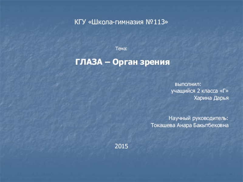 КГУ «Школа-гимназия №113»Тема:  ГЛАЗА – Орган зрения