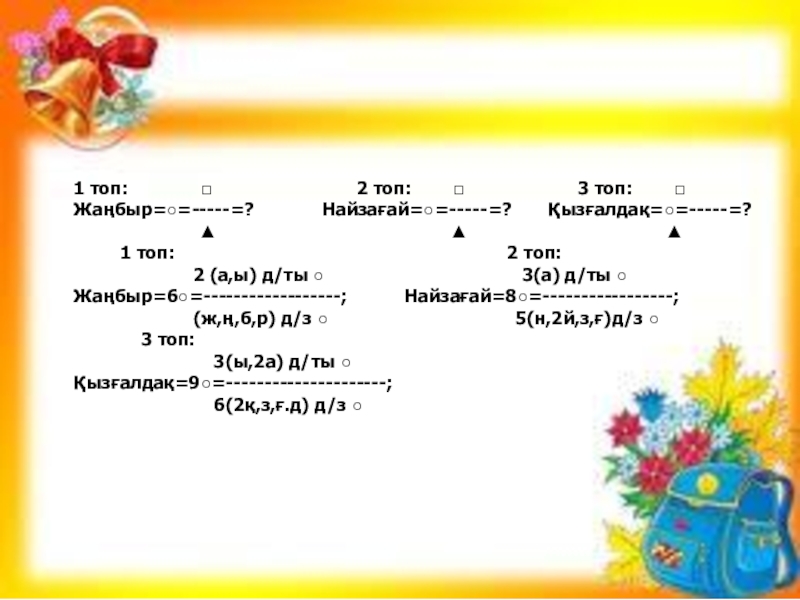 Бүлдірген = 3□=----------------- ; Бүлдірген=6▲=-----------------------------;