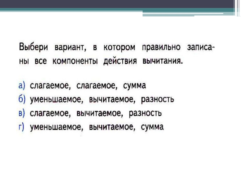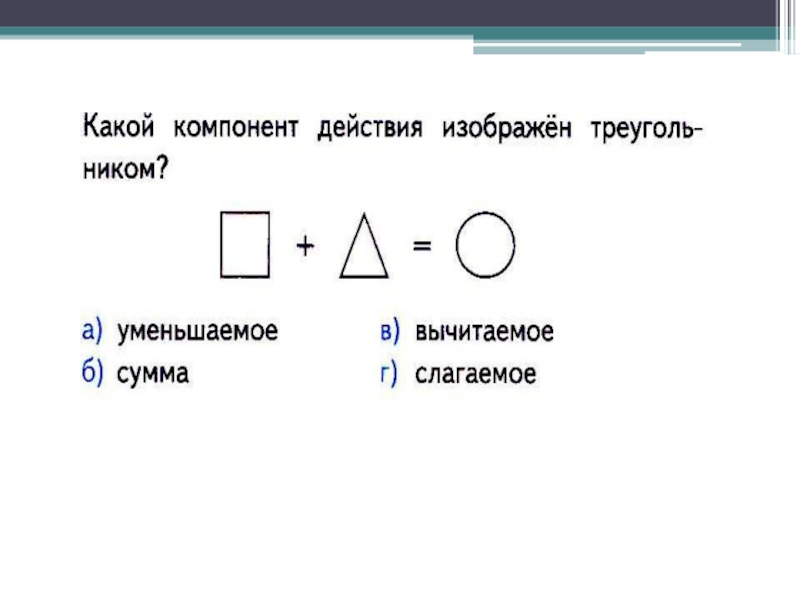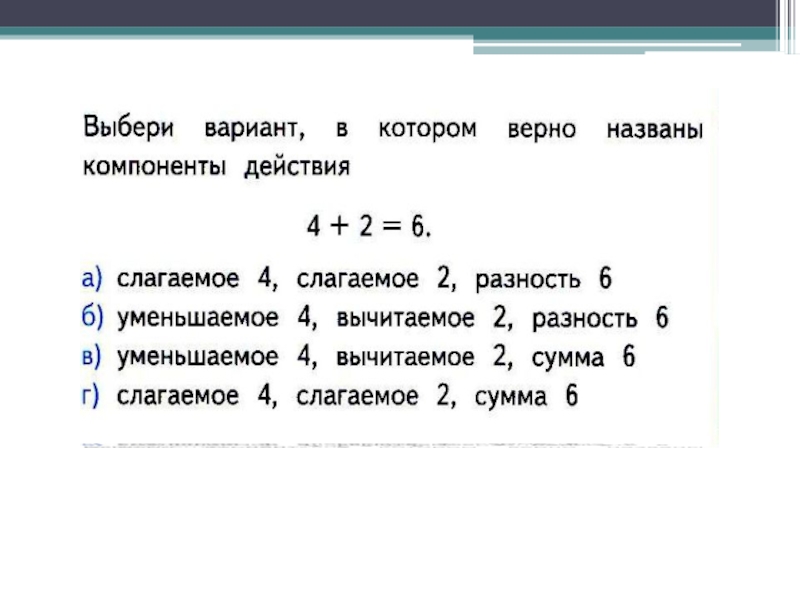Презентация, доклад Название компонентов. Математика. 2 класс. Тесты.