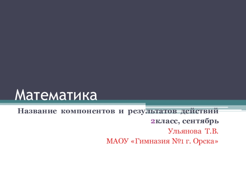 МатематикаНазвание компонентов и результатов действийкласс, сентябрьУльянова Т.В.МАОУ «Гимназия №1 г. Орска»