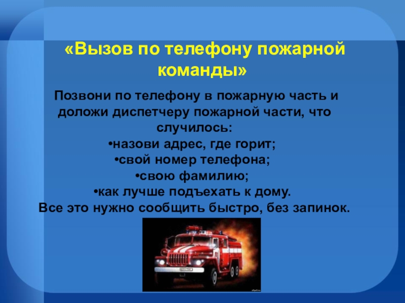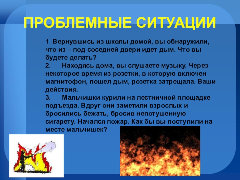 Даже если вам очень страшно находиться в горящей квартире, не надо прятаться под кровать, в шкаф или другие тайные места, ведь пожарным будет очень трудно вас тогда найти и спасти.