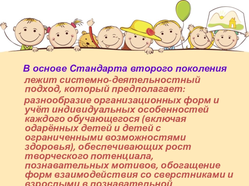 разнообразие организационных форм и учёт индивидуальных особенностей каждого обучающегося (включая одарённых детей и детей с ограниченными возможностями здоровья), обеспечивающих рост творческого потенциала, познавательных мотивов, обогащение форм взаимодействия со сверстниками и взрослыми в познавательной деятельности.