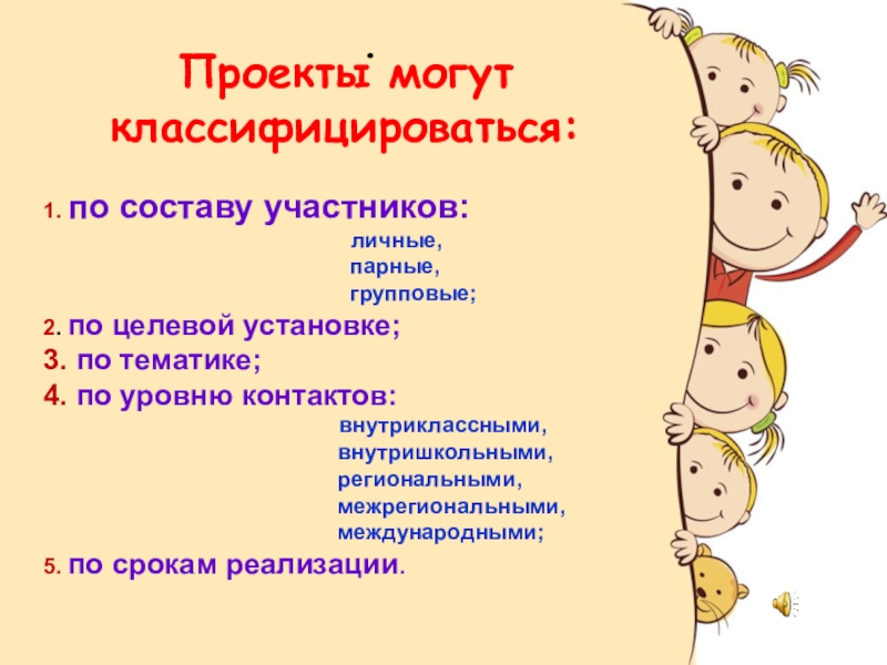 Краткосрочные проекты требуют выделения 4 – 6 уроков.Уроки используются для координации деятельности участников проектных групп,