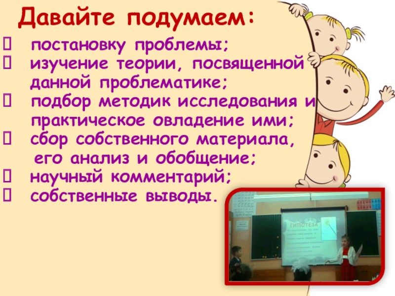 задач, выделение принципов отбора методик, планирование хода исследования, определение ожидаемых результатов, оценка реализуемости исследования, определение необходимых ресурсов