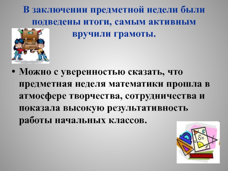 Слайд 20В заключении предметной недели были подведены итоги, самым активным вручили грамоты.