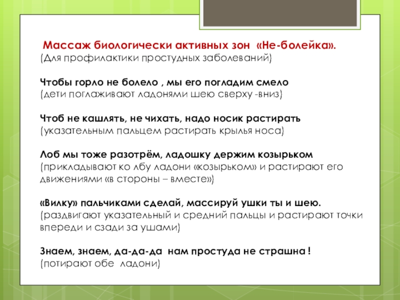 Слайд 25 Массаж биологически активных зон «Не-болейка».
