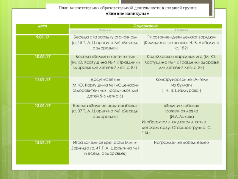 Слайд 30План воспитательно-образовательной деятельности в старшей группе