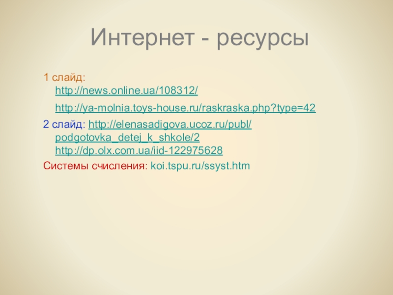 2 слайд: http://elenasadigova.ucoz.ru/publ/ podgotovka_detej_k_shkole/2 http://dp.olx.com.ua/iid-122975628