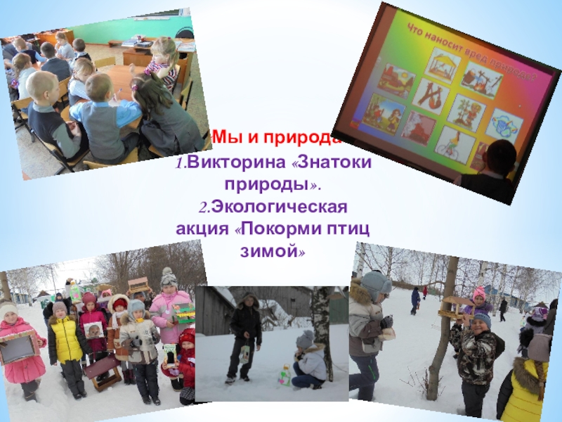 «Мы и природа» 1.Викторина «Знатоки природы».2.Экологическая акция «Покорми птиц зимой»