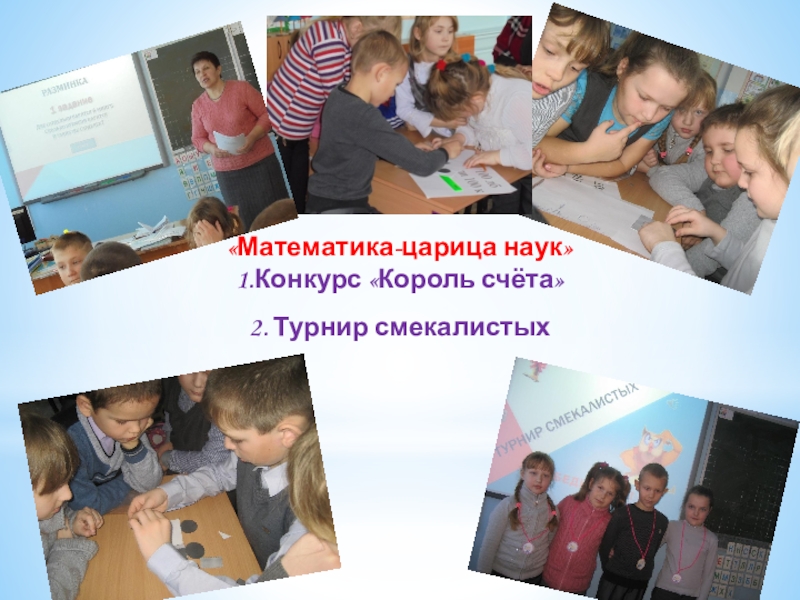 «Математика-царица наук»1.Конкурс «Король счёта»2. Турнир смекалистых