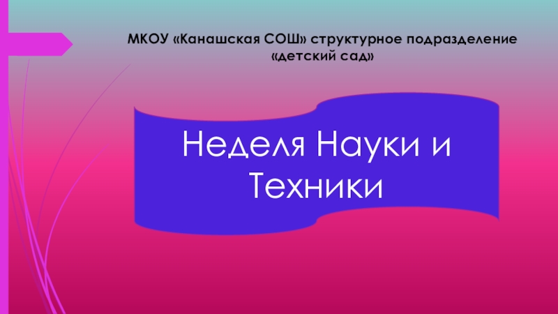МКОУ «Канашская СОШ» структурное подразделение «детский сад»Неделя Науки и Техники