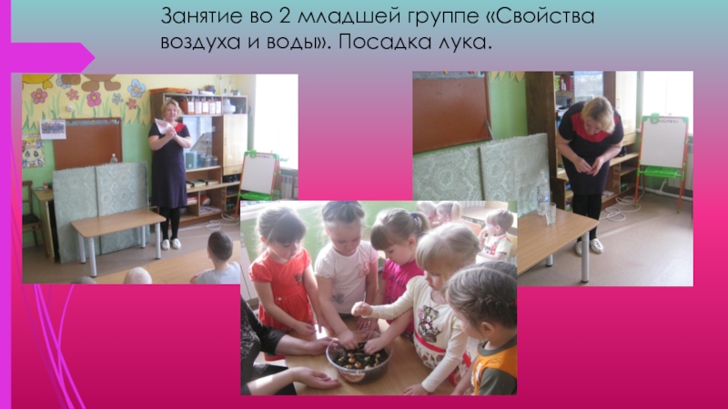 Слайд 6Занятие во 2 младшей группе «Свойства воздуха и воды». Посадка лука.
