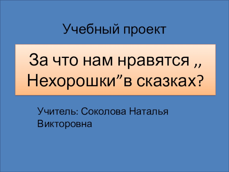 Учебный проектУчитель: Соколова Наталья ВикторовнаЗа что нам нравятся ,,Нехорошки”в сказках?
