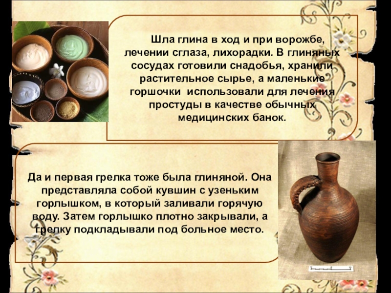 Знахарки точно знали, какую глину следует использовать, какие молитвы на нее нашептывать. Самой ценной считалась печная глина.