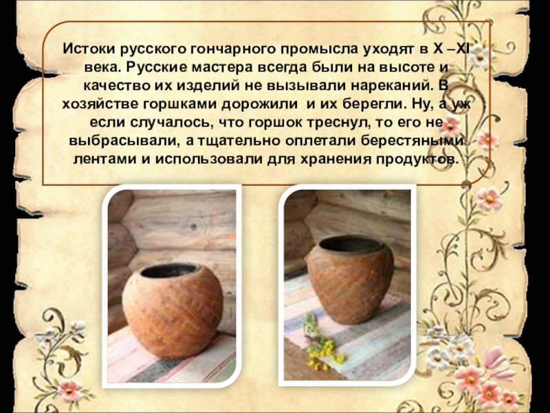 Но чтобы горшок не впитывал влагу, он должен был побывать «на обваре». Для этого его в горячем виде опускали в квасную гущу или жидкую мучную болтушку.