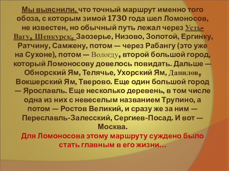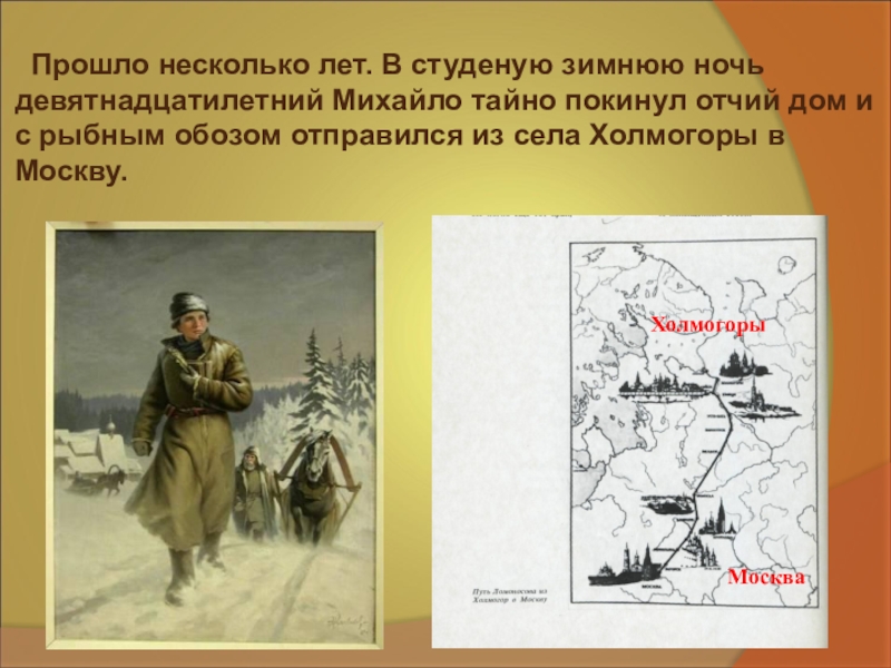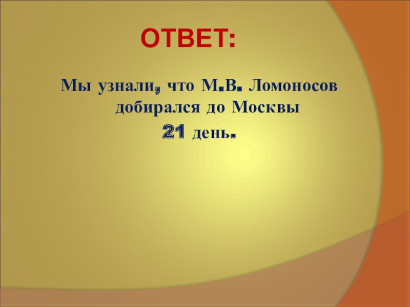 М.В.Ломоносов шел пешком 72 км, проходя за 1 день 24 км.