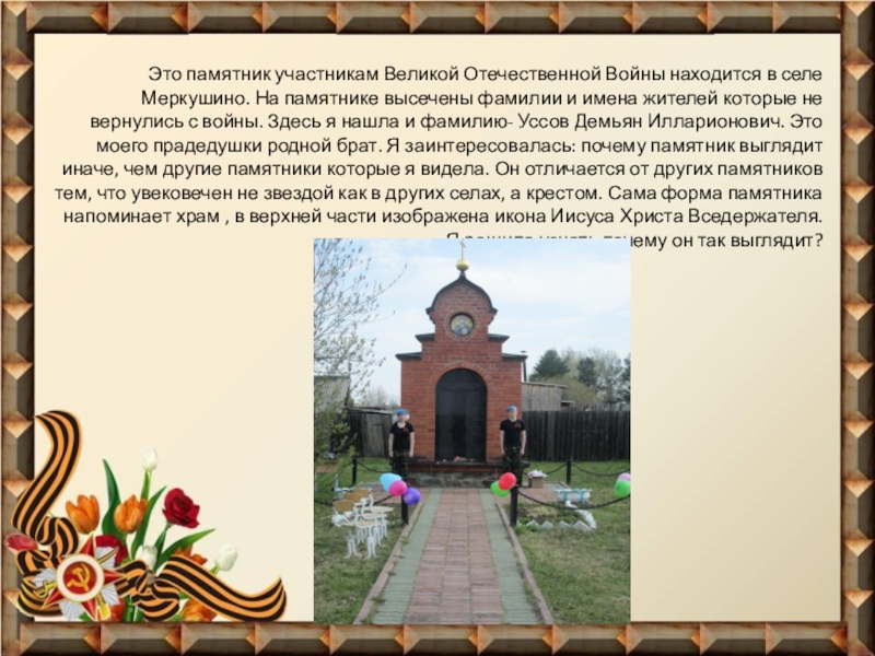 Презентация, доклад Необычный памятник в селе Меркушино(исследовательская работа)
