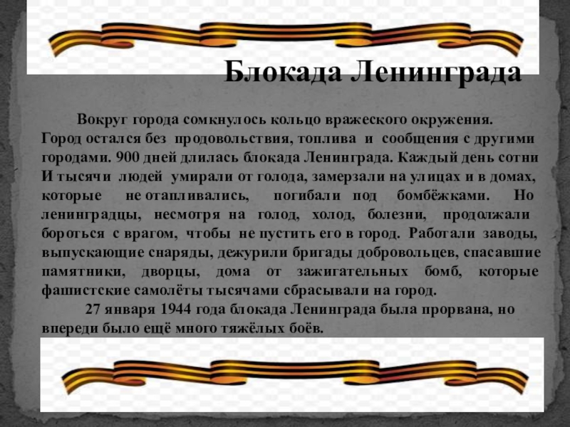 городами. 900 дней длилась блокада Ленинграда. Каждый день сотни