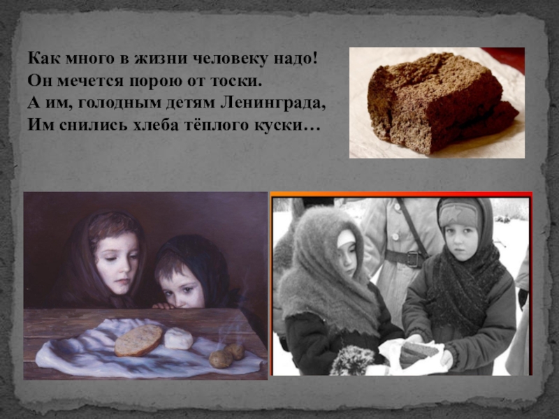 Слайд 18Бедный ленинградский ломтик хлеба –