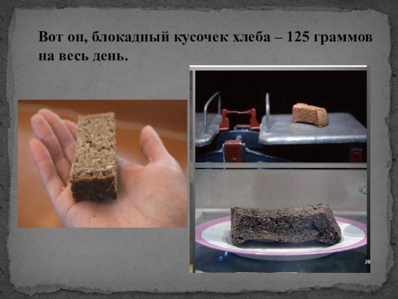 Слайд 19Вот он, блокадный кусочек хлеба – 125 граммов