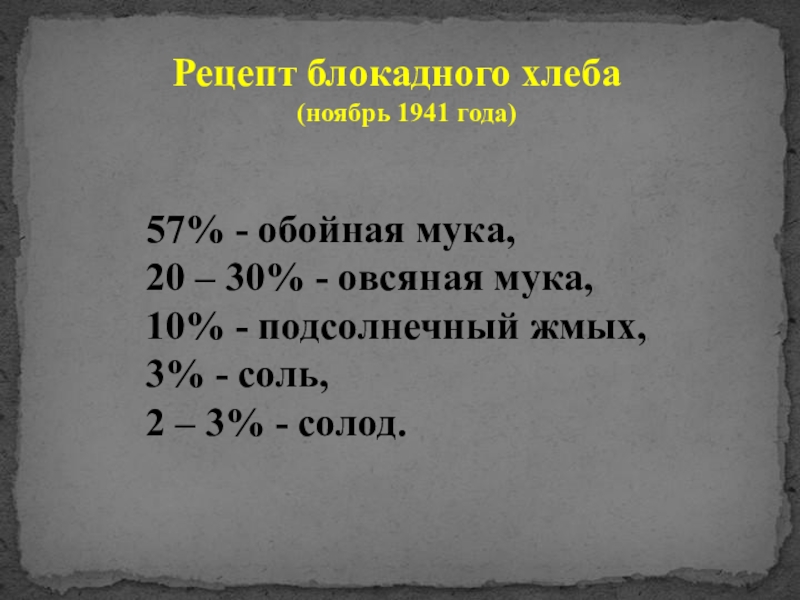 Слайд 13Рецепт блокадного хлеба