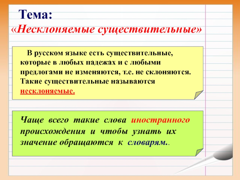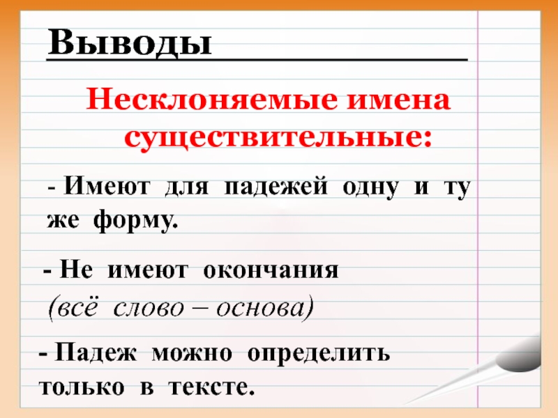 В русском языке есть существительные, которые в любых падежах и с любыми предлогами не изменяются, т.е. не склоняются. Такие существительные называются несклоняемые.