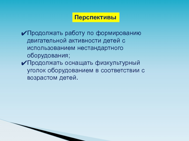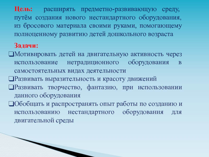 Обобщать и распространять опыт работы по созданию и использованию нестандартного оборудования для двигательной среды