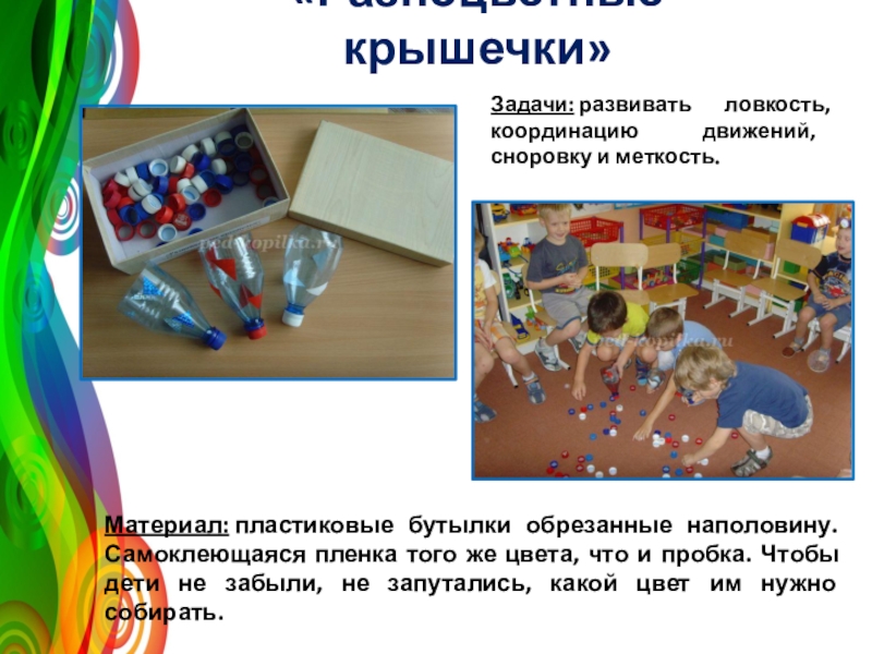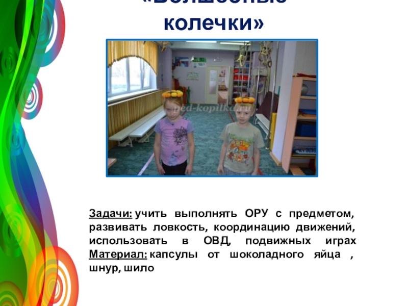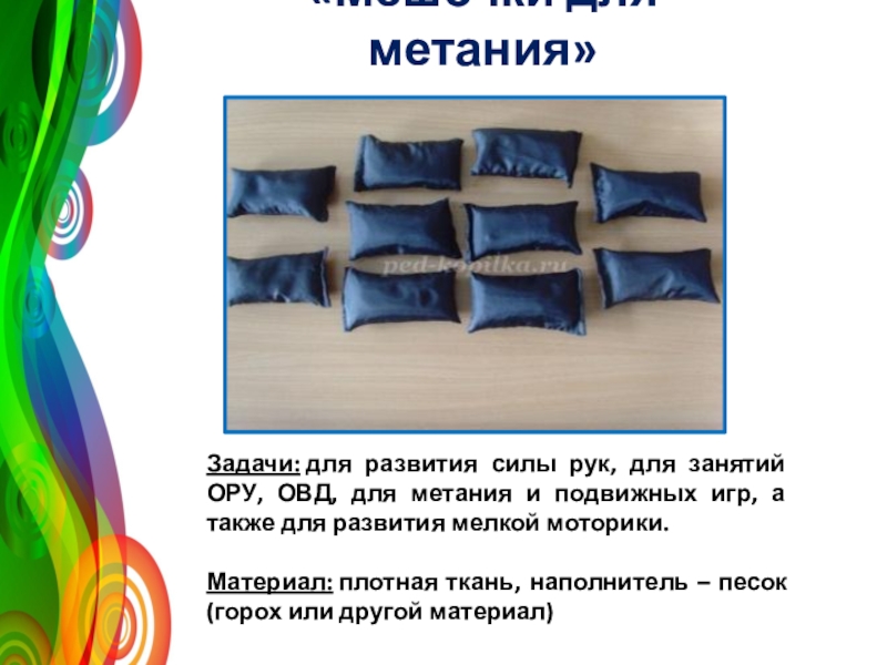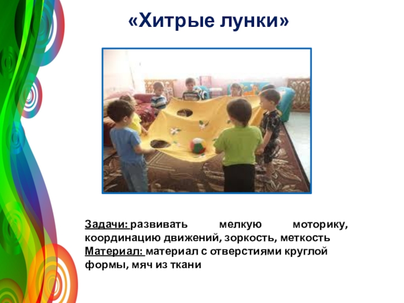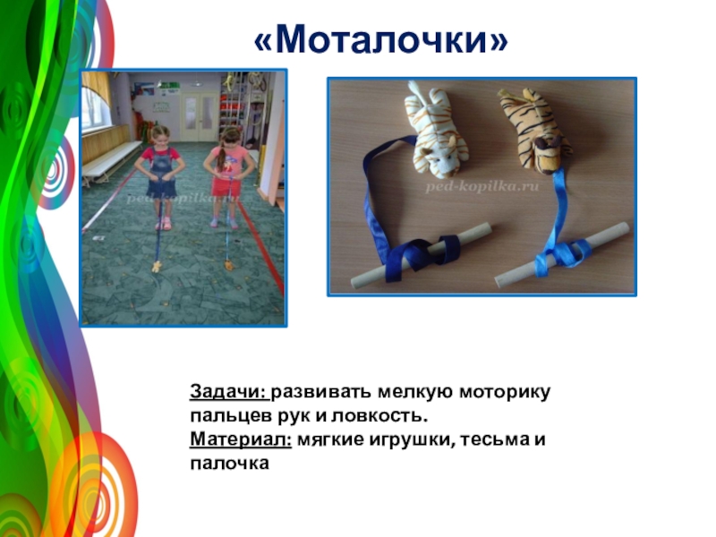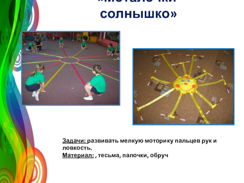 Задачи: развивать ловкость, координацию движений, сноровку и меткость.