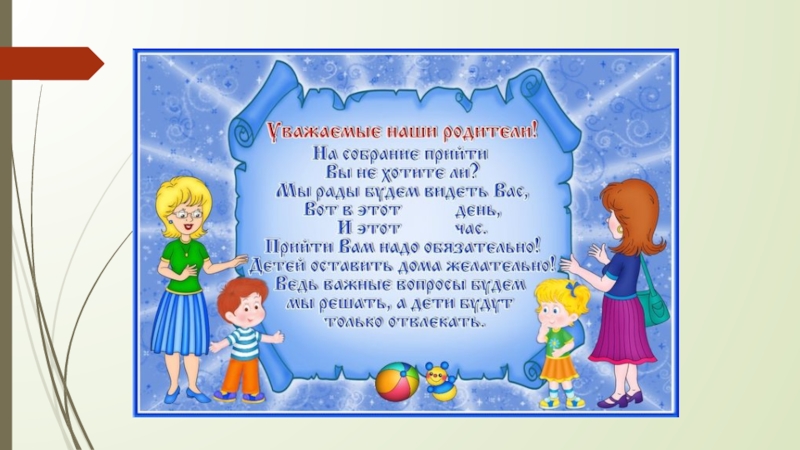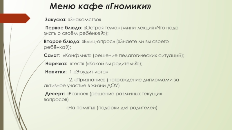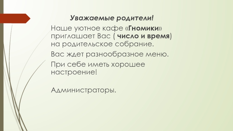 уютное кафе «Гномики» приглашает Вас ( число и время) на родительское собрание.