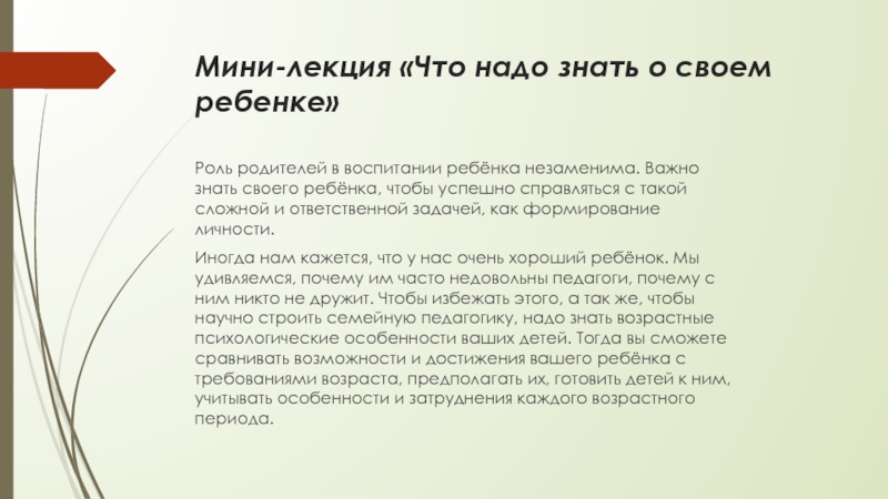 Слайд 9Мини-лекция «Что надо знать о своем ребенке»