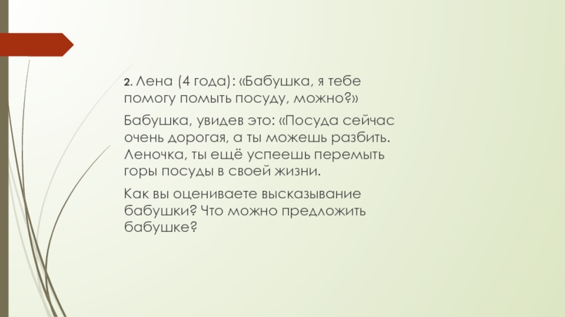 Слайд 142. Лена (4 года): «Бабушка, я тебе помогу помыть посуду, можно?»