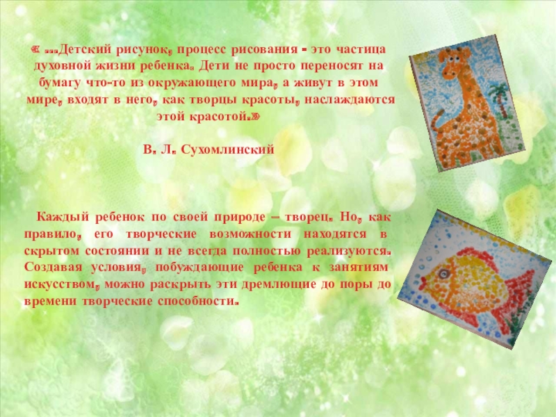 Слайд 2« ...Детский рисунок, процесс рисования - это частица духовной жизни ребенка.