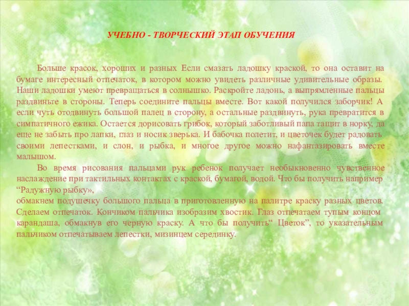 Обучение пальчиковому рисованию идет в несколько этапов.