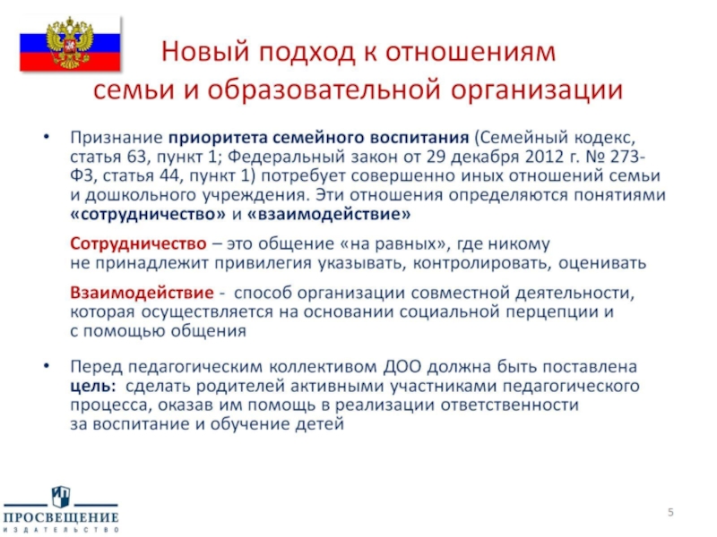 Для осуществления более тесного сотрудничества педагогов и родителей перейти к новым формам взаимодействия с семьями.