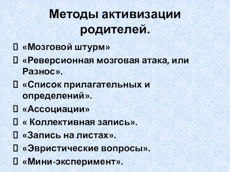 Методы активизации родителей.