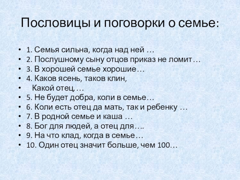 Пословицы и поговорки о семье: