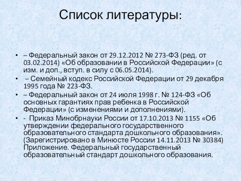 – Федеральный закон от 29.12.2012 № 273-ФЗ (ред. от 03.02.2014)