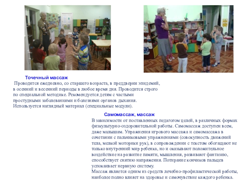 Массаж является одним из средств лечебно-профилактической работы, наиболее полно влияет на здоровье и самочувствие каждого ребенка.