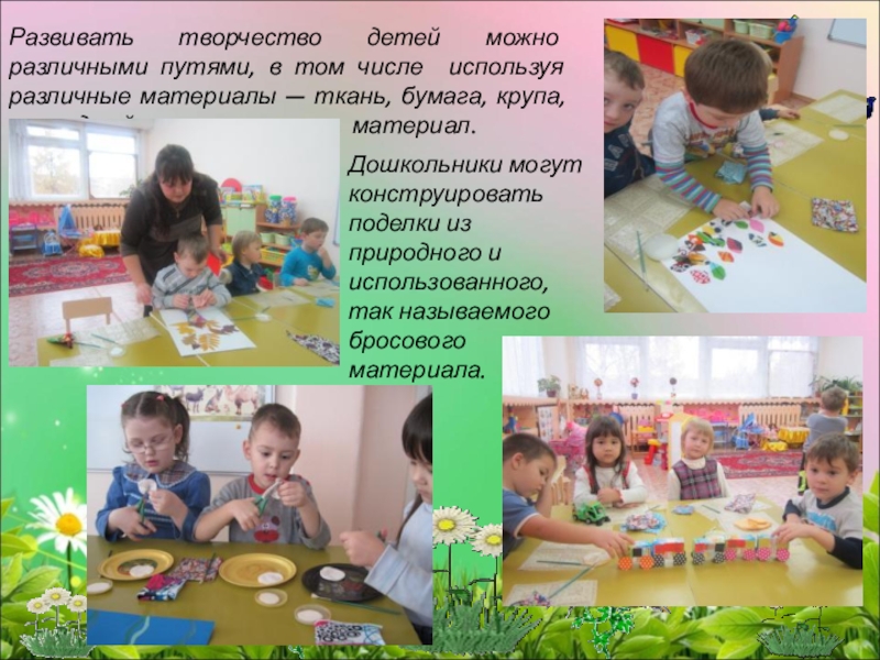 Дошкольники могут конструировать поделки из природного и использованного, так называемого бросового материала.