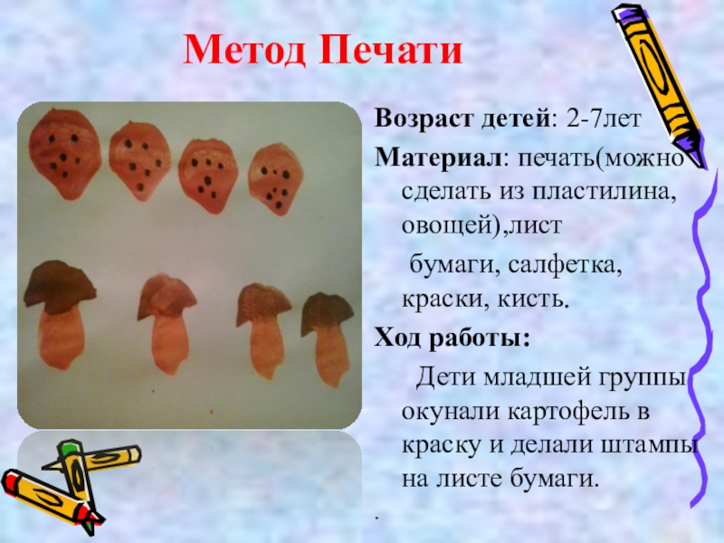 Материал: печать(можно сделать из пластилина, овощей),лист