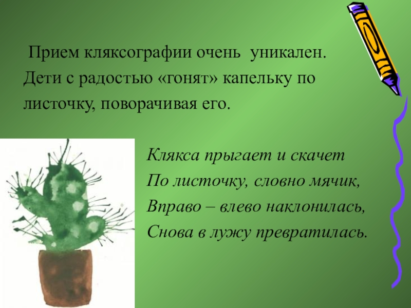 ставить на бумаге кляксы и получать забавный рисунок. Изобразительная