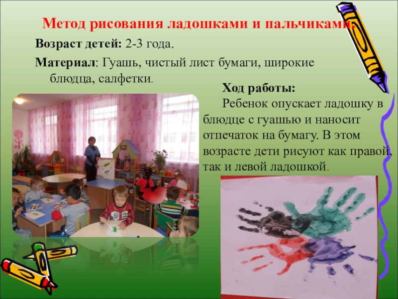 будет интересно рисовать пальчиками , делать рисунок собственной ладошкой,