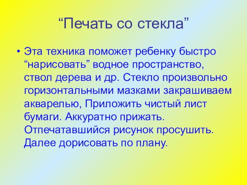 Слайд 39“Печать со стекла”