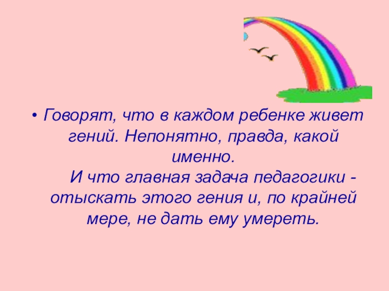И что главная задача педагогики - отыскать этого гения и, по крайней мере, не дать ему умереть.
